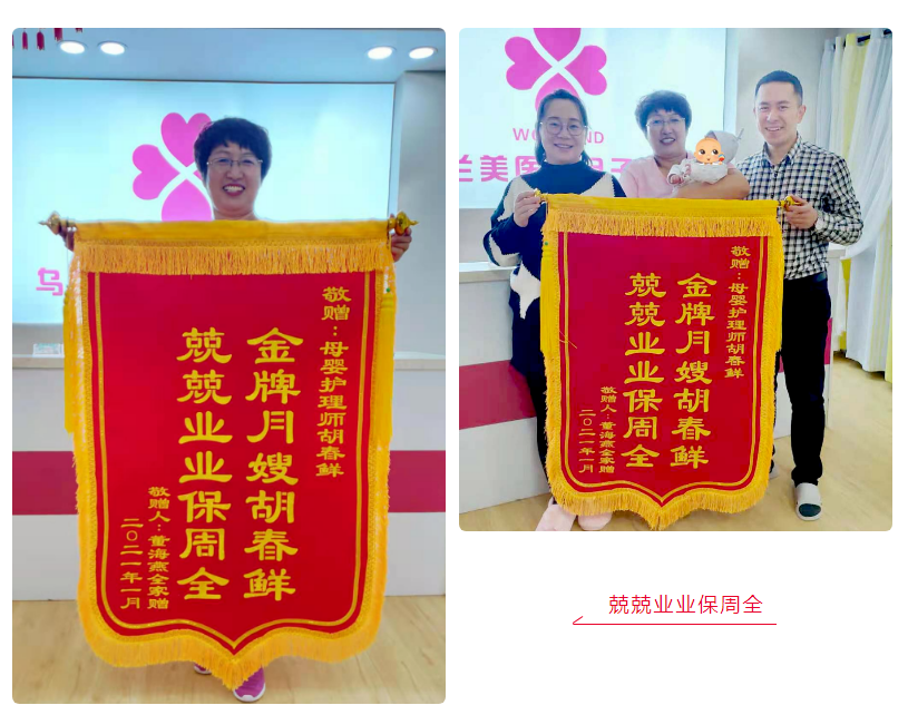 手捧錦旗的胡春鮮動(dòng)容的說:“這本就是我的分內(nèi)工作,是因?yàn)?lsquo;米勒媽媽’(寶媽)的活潑開朗,讓我們相處的更加融洽,也讓我的工作更好的開展!與此同時(shí)更要感謝烏蘭美醫(yī)養(yǎng)月子中心給我提供了事業(yè)發(fā)展的平臺(tái),感謝我的每一位老師對我的幫助和指導(dǎo),感謝大家給予我家一般的關(guān)懷和溫暖”。