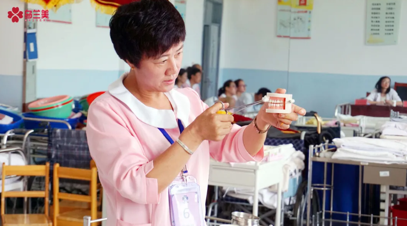 3. 有活動義齒者,幫其取下,用流動水刷洗,禁用熱水,以免變形、變色和老化,操作完畢再給患者戴上。