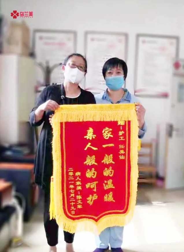 “我就是一個(gè)普通的農(nóng)民,沒(méi)有什么特殊的經(jīng)歷,但自從做了護(hù)工之后對(duì)我生活確實(shí)有很大的變化——增加了家庭經(jīng)濟(jì)收入來(lái)源。通過(guò)將近一年在醫(yī)院陪護(hù)病人的經(jīng)歷,讓我見(jiàn)識(shí)到了生命的堅(jiān)強(qiáng)和脆弱,也讓我認(rèn)識(shí)到生命的珍貴!”獲得錦旗的她略顯激動(dòng)的說(shuō):“感謝烏蘭美健康集團(tuán)為我們這些沒(méi)有一技之長(zhǎng)的人提供就業(yè)平臺(tái),也感謝所有在工作中幫助過(guò)我的人?,F(xiàn)在,我可以將所學(xué)到的知識(shí)幫助到更多需要幫助的人。”