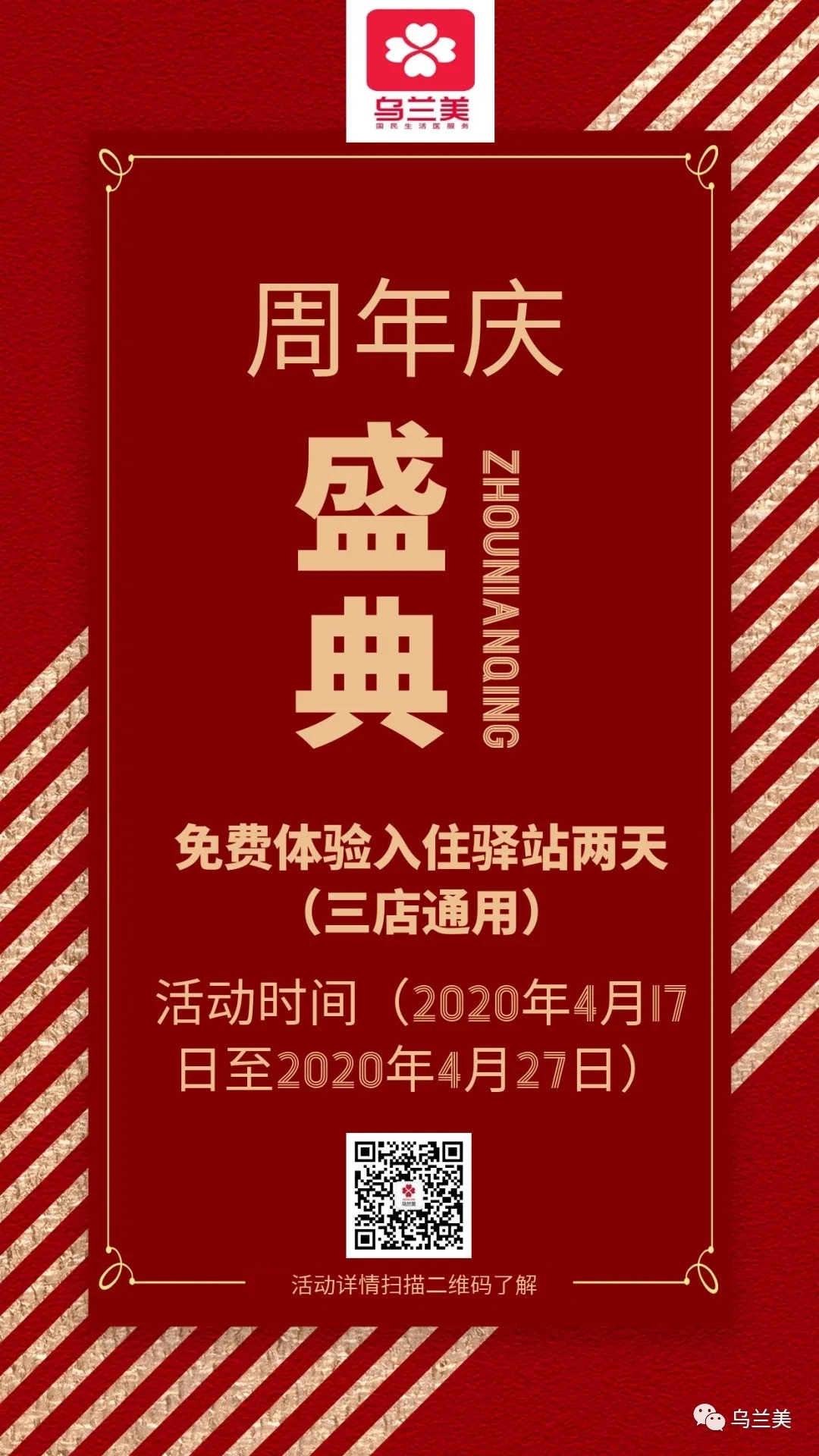 【周年鉅惠】烏蘭美養(yǎng)老驛站(中心醫(yī)院店)一歲啦!特大福利震撼來襲~發(fā)布時間: 2020-04-16 -